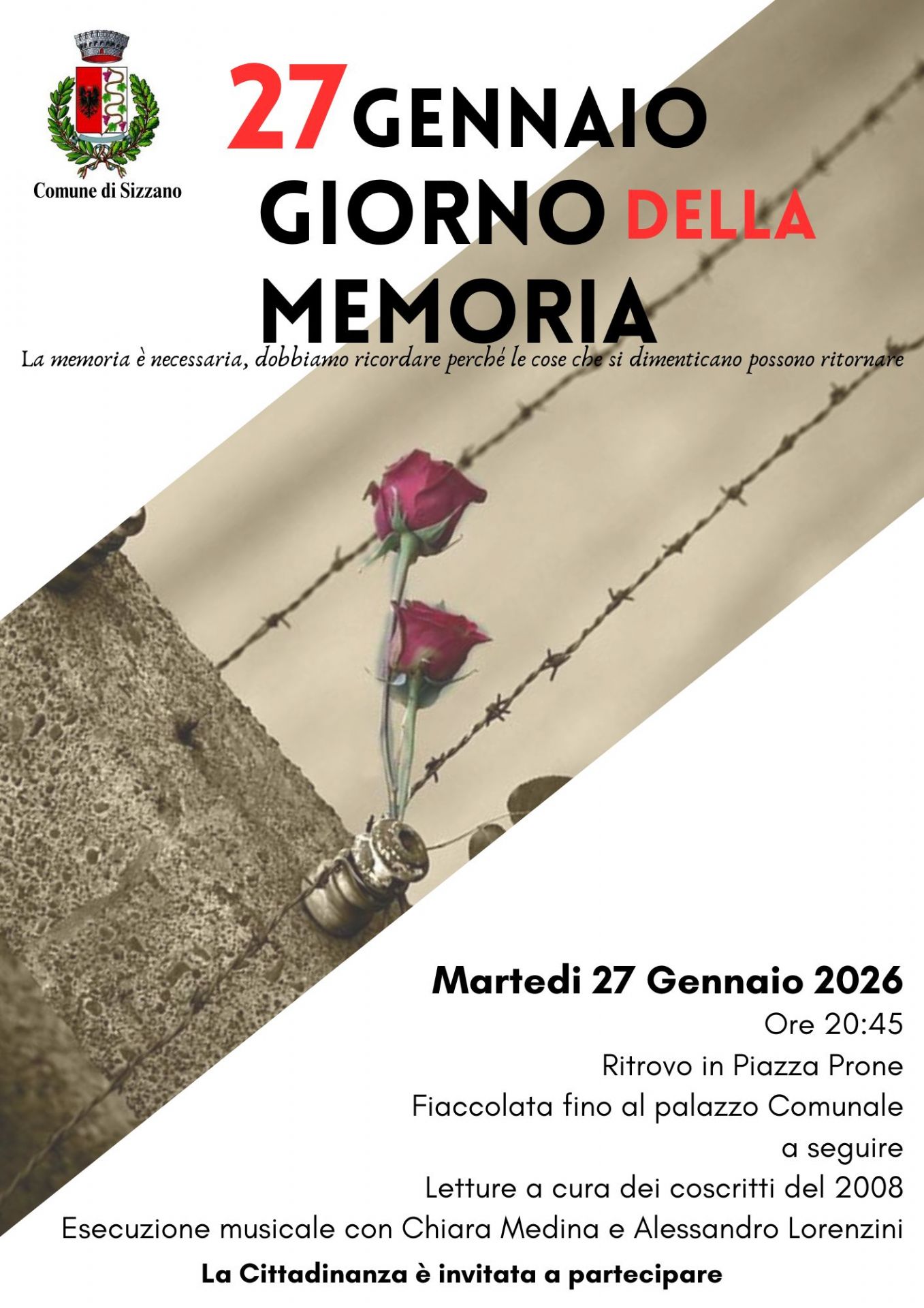 La cittadinanza Sizzanese è invitata a partecipare ad una breve cerimonia così da unirsi al ricordo della comunità internazionale.