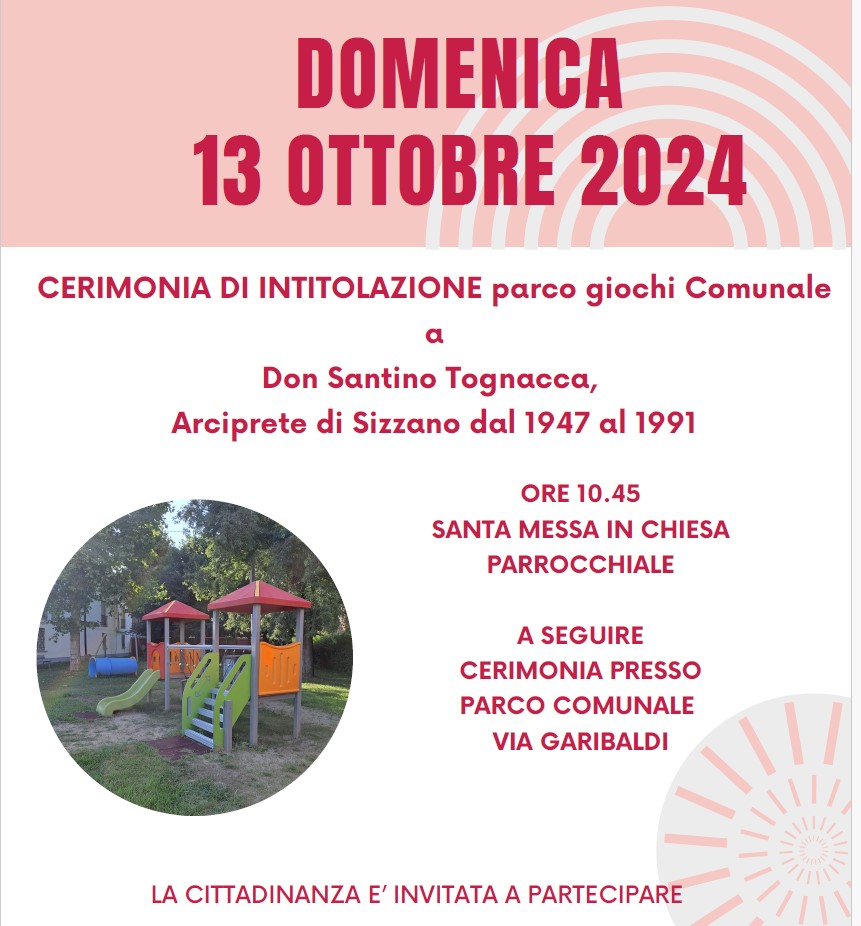 CERIMONIA DI INTITOLAZIONE parco giochi Comunale a Don Santino Tognacca,